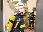 Am Einsatzort angekommen, wurde der Einsatzleiter durch das anwesende Fachpersonal eingewiesen. Die Brandmeldeanlage hatte den Rauch des glimmenden Materials Glutstock in einem Anlagenteil detektiert. Unverzüglich wurde durch das Betriebspersonal die Rohrleitung abgeschiebert, um eine Brandausbreitung zu verhindern. Der Atemschutztrupp öffnete daraufhin die Anlage und löschte den Glutstock mit einem C-Rohr ab.