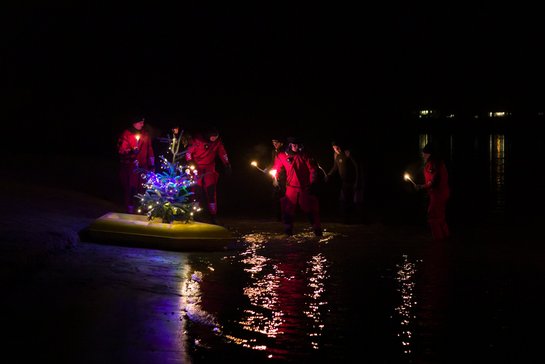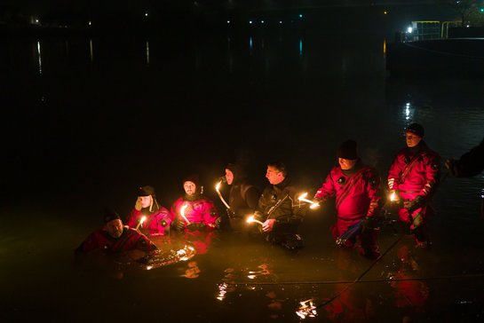 Wie seit Jahrzehnten üblich, wurden bereits am Vormittag des 20. Dezember einige Vorbereitungen getroffen, unter anderem das Setzen der Nadel in der Donau. Am Abend trafen schließlich die Tauchgruppen aus Alkoven und Eferding in unserem Feuerwehrhaus ein, sodass wir pünktlich um 18 Uhr mit dem Programm beginnen konnten.