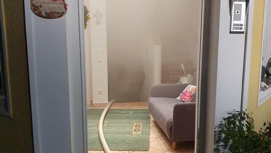 Nach der Lageerkundung und Befragung des Hauseigentümers durch den Einsatzleiter wurde festgestellt, dass im Zuge einer kleinen Party im Keller des Einfamilienhauses ein Brand ausgebrochen ist und sich noch einige Personen im Gebäude befinden.